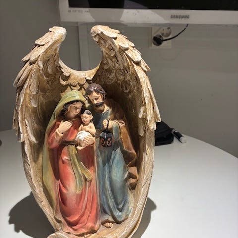 Kaunis roikkuva joulukoriste. Materiaali tuohen tapaista ohutta puulastua. Ehjä ja siisti. Halkaisija noin 25cm.