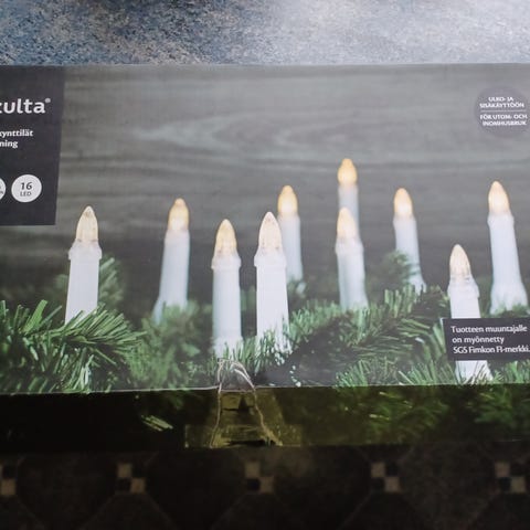 Kuusen kynttilänpidikkeitä ja koristenauhaa