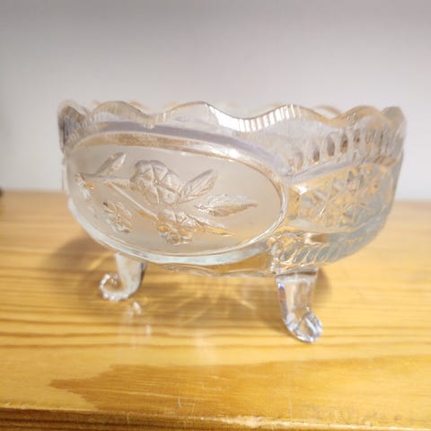 Söpö kullanvärinen sokerikipon pidikke missä kaunis violetti lasinen sokerikulho