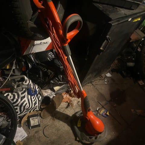 Vähän käytetty vahva sähkötrimmeri (käyttöohjeet mukana). Kuminen 2-komponenttikahva, pyörökahva, ylijännitesuoja, taimisuoja, (siiman katkettua) siimapää säätyy uudelleen napauttamalla sitä kevyesti maata vasten.
