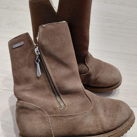 Myydään ihanat talvinilkkurit tytölle koossa 32. Sisältä ihanan pehmeä ja lämmin villavuori. Vedenpitävä materiaali. Pohjat pitävät ja joustavat kumipohjat. Muutaman kerran käytetty parempina kenkinä: ei moitteita.