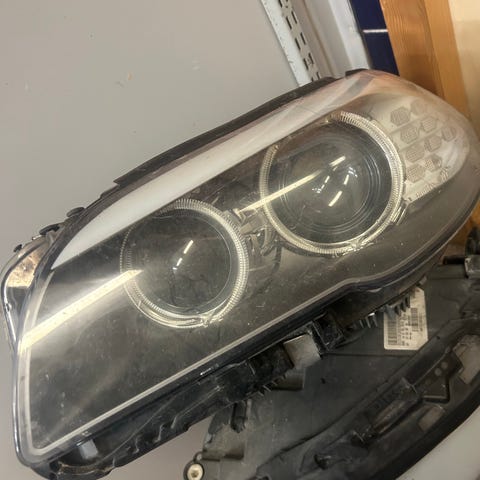 BMW 5-sarja ajovalo, oikean puolen. Valmistettu Saksassa, materiaali PBT-ASA-GF20+. Sopii auton alkuperäiseksi varaosaksi.