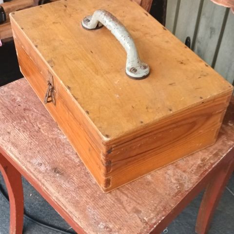 Kuvan mukainen puinen, käsin tehty, vanha laatikko.