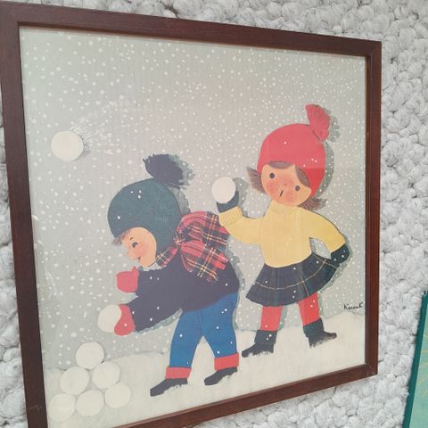 Pieni taulu. Graafikko-kirjailija Taruliisa Warstan käsinpainettu kuva "CHEESE!".