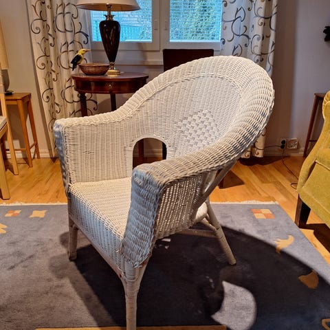 Valkoinen, tukeva rottinkituoli