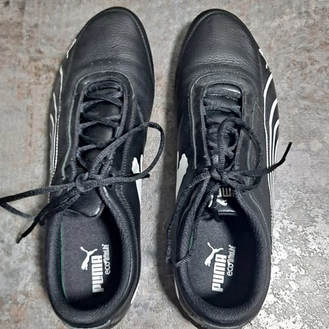 Puma Tennarit kengät koossa 43, mustaa nahkaa. Kengissä on lämmin vuori, joka sopii viileämpiin olosuhteisiin. Kengät ovat korkeavartiset.