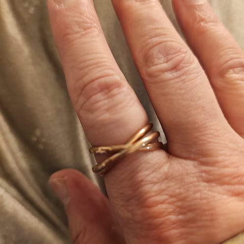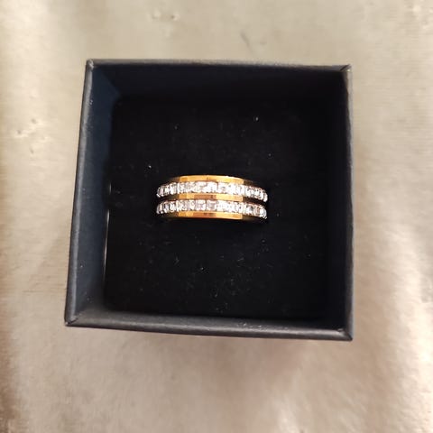 Uusi ruusukullanvärinen sormus. Ruostumatonta terästä. Koko 18,1 (8). Myytävänä myös muualla. Postitus onnistuu myös kirjeenä 2,80e.