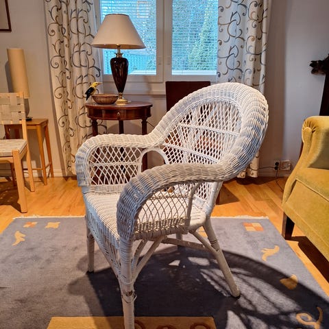Valkoinen, tukeva rottinkituoli