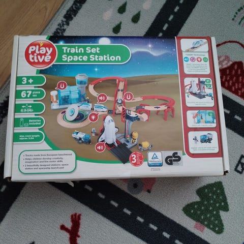 Myydään uusi, kerran nyt koottu avaruusasema junaratasetti. 67 osaa (Lidl, brioon yhteensopiva).