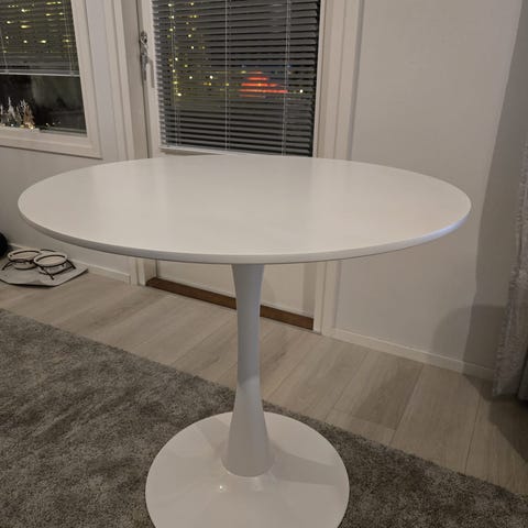 Myydään valkoinen korkeakiilto pöytä. Toisessa kuvassa kolhun kuva, laatikon alareunassa.