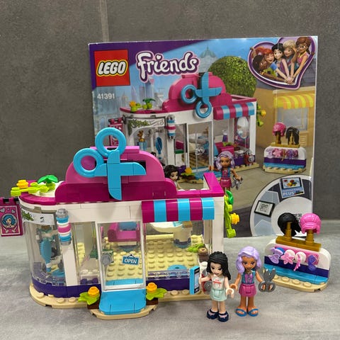 Myydään kuvan mukainen Lego Friends kampaamo (41391). Ohjeet puuttuvat, löytyvät kuitenkin netistä. Hyvä, leikitty kunto. Osa palasista korvattu (mm kahvinkeitin, toisen figuurin vartalo, hiuskoristeet, suihkepullojen korkit). Näistä löytyy kuvat. Muuten kaikki osat mukana.