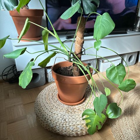 Myydään kuvan monilehtinen kirjava peikonlehti. Mullaton kasvualusta.