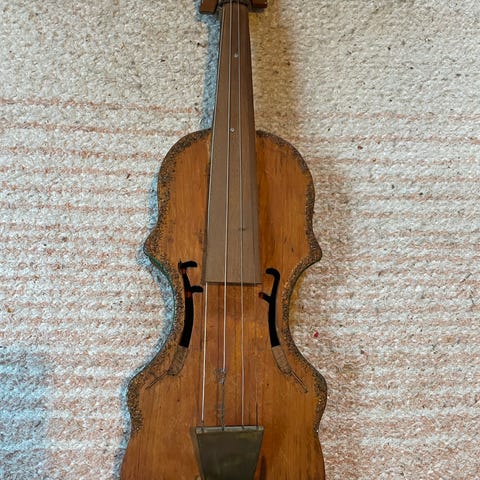 Puinen viulu, jossa ei ole näkyviä merkintöjä tai valmistajatietoja. Viulun runko on valmistettu puusta ja se on tarkoitettu soitettavaksi jousella. Sopii soittoharjoitteluun tai kokoelmakäyttöön. Viulu on itse tehty.