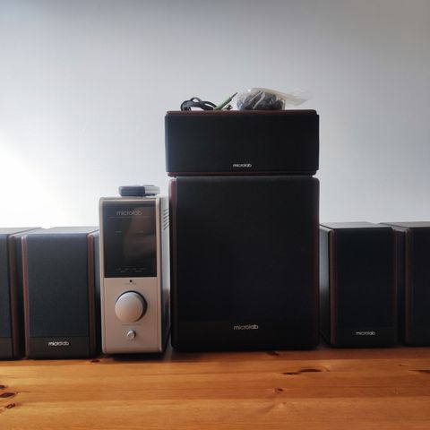 Myydään hyvässä kunnossa oleva Microlab Pro 1 stereovahvistin sekä kaksi 25 Wt kaiutinta.