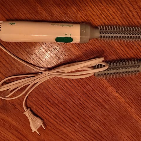 Erittäin hyvät ilmakiharrin Braun ja fööniharja. Kihartimen johdon pituus hyvä 2 m. Siistit ja puhtaat.