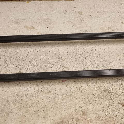 Thule kattotelineet, mustat, sopivat auton katolle kuljetustelineiksi. Valmistettu kestävästä materiaalista, käytetty, mutta ehjät ja käyttökelpoiset.