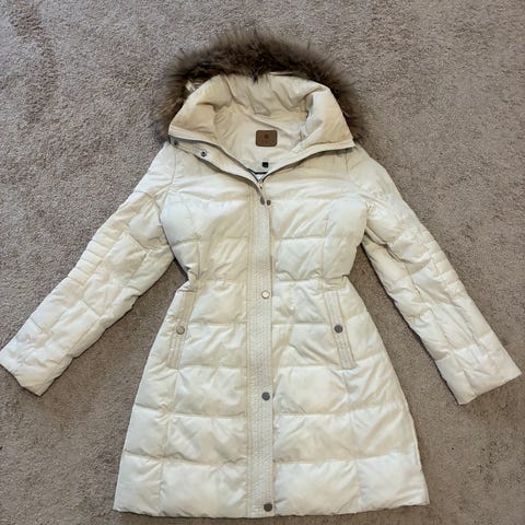 Five Seasons Talvitakki on naisten talvitakki, väriltään valkoinen, koko 38. Takissa on vetoketjullinen ja napillinen etuosan suljin, viisi taskua+povitasku. Takissa on huppu, jossa on tekoturkisreunus. Sisäpuolella on lämmin vuori, joka sopii kylmiin olosuhteisiin.