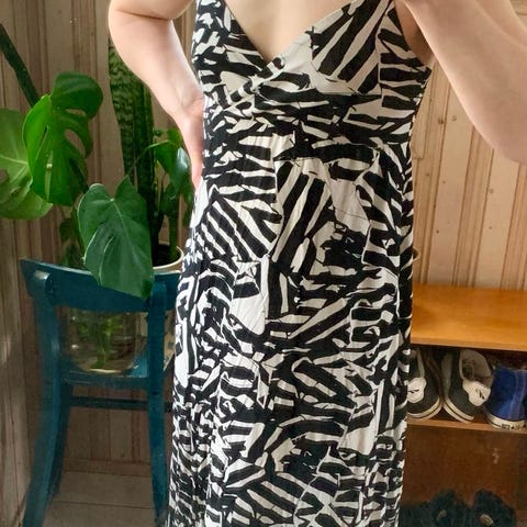 Hyvässä kunnossa, jonkun verran käytetty. Hihaton, narut joilla voi sitoa niskaan. Venyy ylhäältä mutta ei helmasta. Ostaja maksaa postikulut.