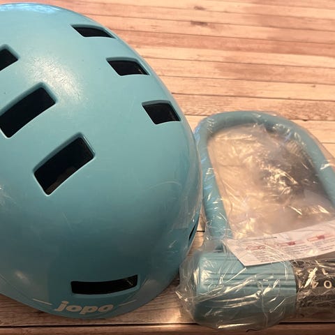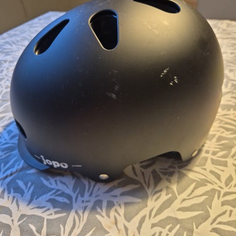 Käytetty pyöräilykypärä, joka sopii lapselle. Hieman näkyy käytön jälkiä.