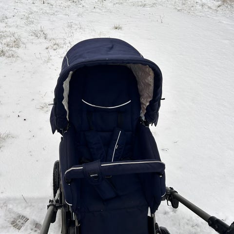 Pienellä liikkeellä rattaat muuttuvat kelkaksi, joka kulkee helposti lumen ja kinosten päällä.