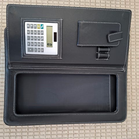 Käyttämättä jäänyt hyväkuntoinen Volanti salkku asiakirjoille. Neljä erikokoista taskua, käyntikorttitasku, tasku avolehtiölle, kynänpidike. Koko 390x307x45mm. Mustaa keinonahkaa. Nouto Vantaa tai postitus.
