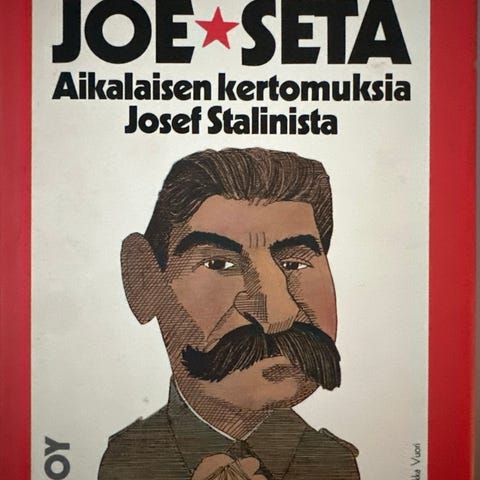 Veikko Huovinen Joe-setä Kirja sisältää aikalaisen kertomuksia Josef Stalinista. Kirjan kansi on punainen ja siinä on piirroskuva Stalinin kasvoista. Takakannessa on kuva savukkeen tumpista ja kirjailijan nimi.