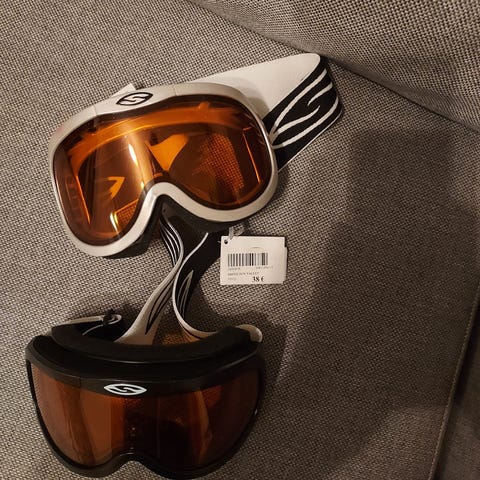Smith Lumelaskettelulasit sinisen ja vaaleanpunaisen sävyisellä säädettävällä hihnalla. Linssit ovat ruskeat, kehys vaaleansininen. Sopivat lumilautailuun ja lasketteluun tarjoamaan suojaa lumelta ja tuulelta. Hinta/kpl, jos ostat molemmat voin laskea hieman hintaa :)