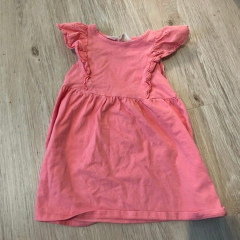 Lindex punainen hihaton mekko, jossa valkoisia pieniä sydämiä. Koko 92. Kiinnitys takaa napeilla.