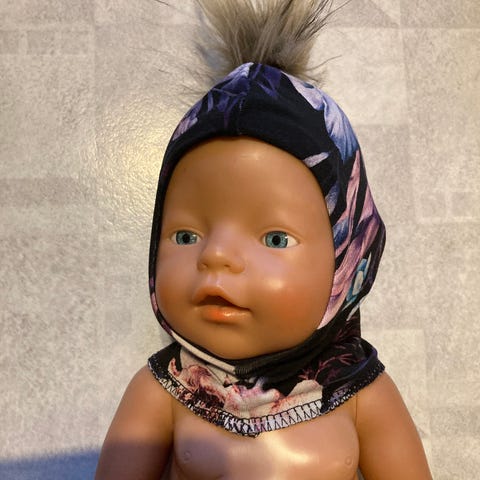 Uusi Baby born kypärämyssy. Tekoturkistupsu. Nukke ei kuulu kauppaan. Hinta 6€+postitus toridiilinä