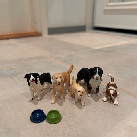 Myydään kuvassa olevat Schleich koirat tarvikkeineen. En postita.