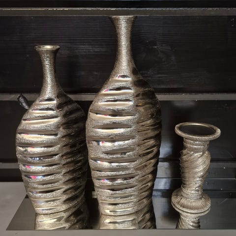 Virheettömät , siniset , maljakko sekä kynttilänjalka.