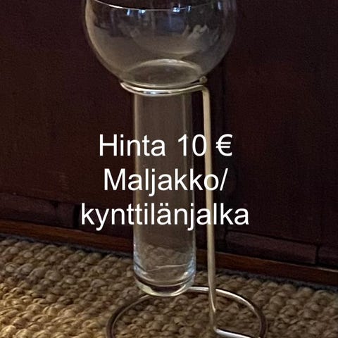 Kynttilänjalka sopii sekä pitkälle kynttilälle, että tuikulle. Sen korkeus on n 6 cm / halkaisija n 8 cm.