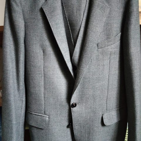 Tumman harmaa Luhta miesten pukusetti: takki, liivit, housut, koko 52