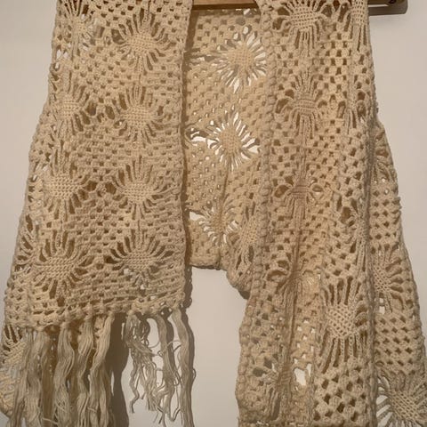 Myydään todella vähän käytetty hopeanharmaan värinen iso hartihuivi, jota voi käyttää ponchon tavoin. Malli on u-kirjaimen muotoinen, joten laskeutuu nätisti ylle ja voi pitää eri tavoilla asteltuna. Kangasta on runsaasti. Koko one size ja sopii monenkokoiselle ihmiselle. Kauniisti kirjailtu kuvio.