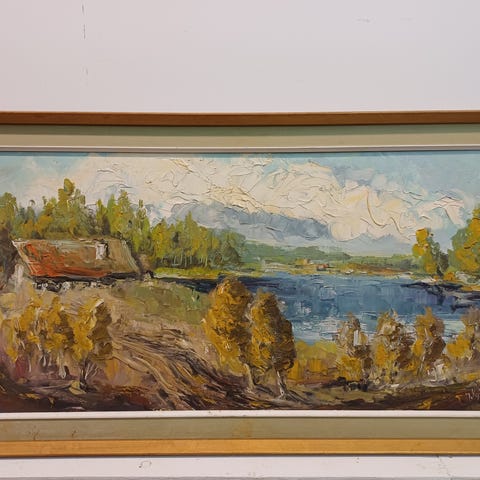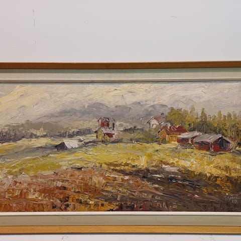 Väinö Hervon öljyvärityö levylle vuodelta 1934. Koko kehyksineen 70 x 78cm.