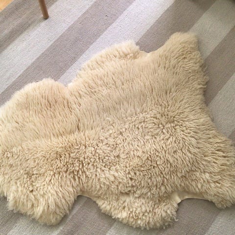 Käyttämättömiä tilan omista lampaista valmistuneita taljoja.