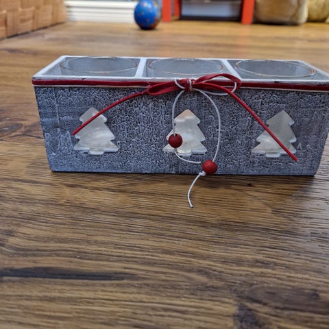 - Jouluomenan mallinen punertavasävyinen tuikkukynttiläkippo / koriste. Tähdet avonaiset, joista kynttilä valaisee nätisti. Sisälle sopii kaikki normaalin tuikun kokoiset kynttilät, myös led. Halk. n. 9 cm.