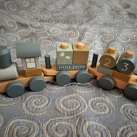 Hyvässä kunnossa Little dutch juna. Yksi palaa puutuu.