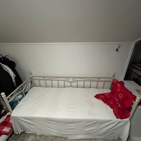 IKEA vuodesohva harmaalla kangaspäällysteellä. Sohva toimii myös vuoteena, jossa metallirunkoinen mekanismi ja vaahtomuovipatja. Sopii käytettäväksi sekä istuimena että vuoteena, materiaali kestävää kangasta.