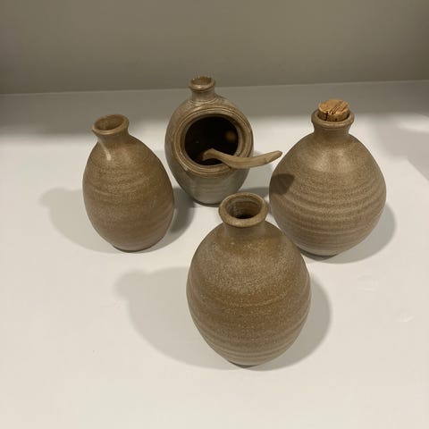 Suomalaista keramiikkaa. Käsin tehty keraaminen savilyhty. Halkaisija noin 8 cm.
