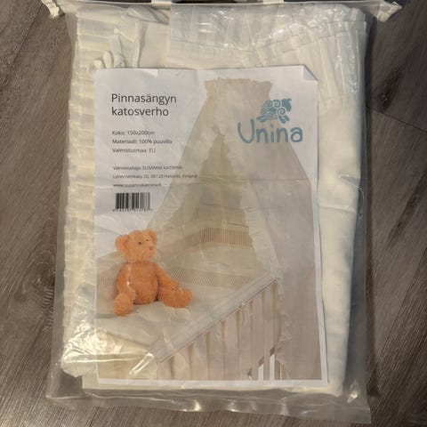 Pinnasängyn verho, tanko ja pussilakanasetti: