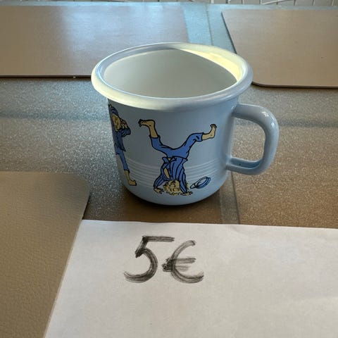 Muurlan emalinen Mörkö muki, hattivatteja toisella puolella.