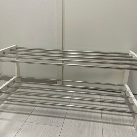 Kenkäteline on alkuperäispakkauksessa kasaamatta, hattuhylly/naulakko on valmiiks koottu. Myydään yhteishintaan vain 38 €. Tai erikseen kenkäteline 28 € ja naulakko 12€.