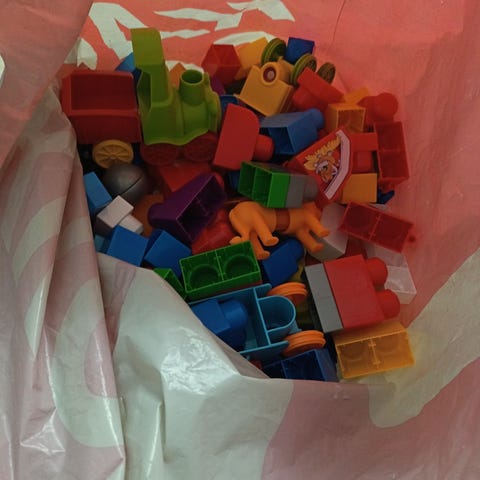 Sekalainen valikoima palikoita.