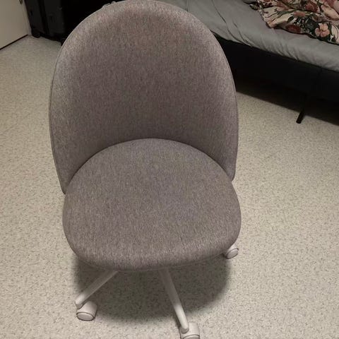 Jysk Tyra työtuoli beige/harmaalla kankaalla. Tuolissa on pyörät ja korkeussäätö,