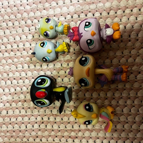 Littlest Pet Shop lasten lelut, eläinhahmot, eri väreissä. Setti sisältää viisi pientä hahmoa, jotka soveltuvat lasten leikkeihin.