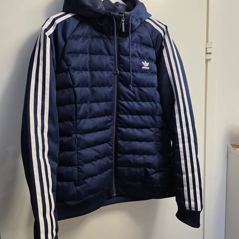 Adidas EsPa toppatakki sinistä, hupullinen malli. Materiaali on suunniteltu tarjoamaan lämpöä ja suojaa viileämmissä olosuhteissa. Sopii käytettäväksi ulkoiluun ja urheiluun. Erittäin hyvä kuntoinen, ei kulumaa.