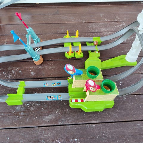 Molemmat hyväkuntoisia ja ehjiä Mario Kart ajoratoja. Molemmat sisältävät auton. Kaikki osat tallessa.