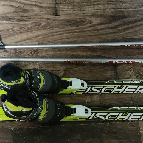 Myydään lasten suksipaketti.Sukset 137cm,sauvat 100cm,hiihtokengät 36.