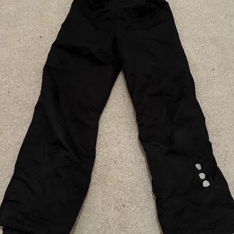 Tutta toppahousut henkseleillä. Karhentumaa polvissa ja oikeanpuoleisessa polvessa pieni reikä päällikankaassa, vaatii siis paikan jos haluaa pitää kosteuden kestävyyden. Yhdestä kohtaa heijastimen ommel ratkennut. Virheet huomioitu hinnassa. Meillä on kissa.